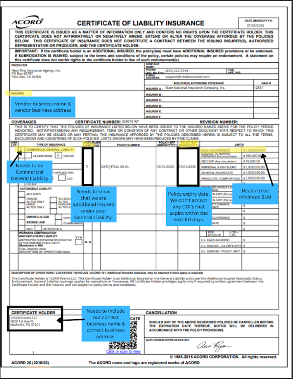 Here is what your Certificate of Insurance (COI) Should Contain: